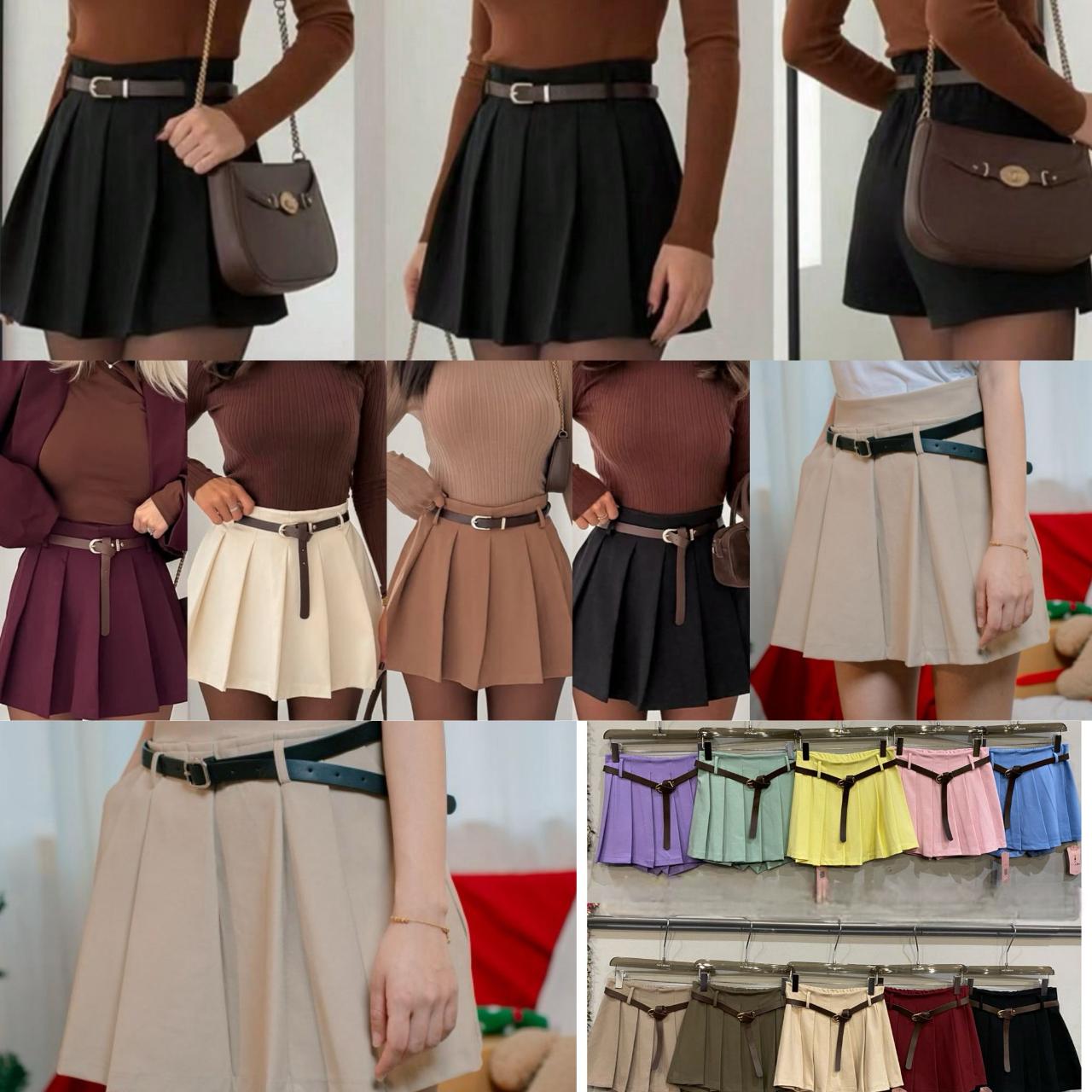 ✨ Falda corta con cinturón incluido, estilo mini power look. Con vuelo, tablitas y colores ideales para combinar en otoño o primavera.