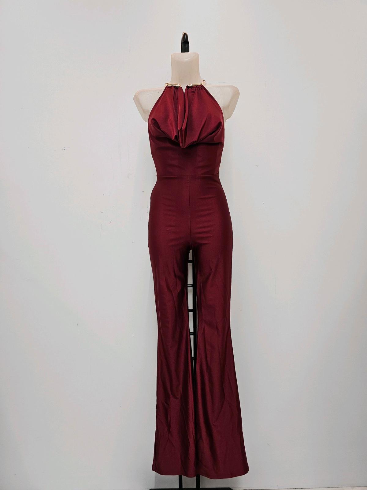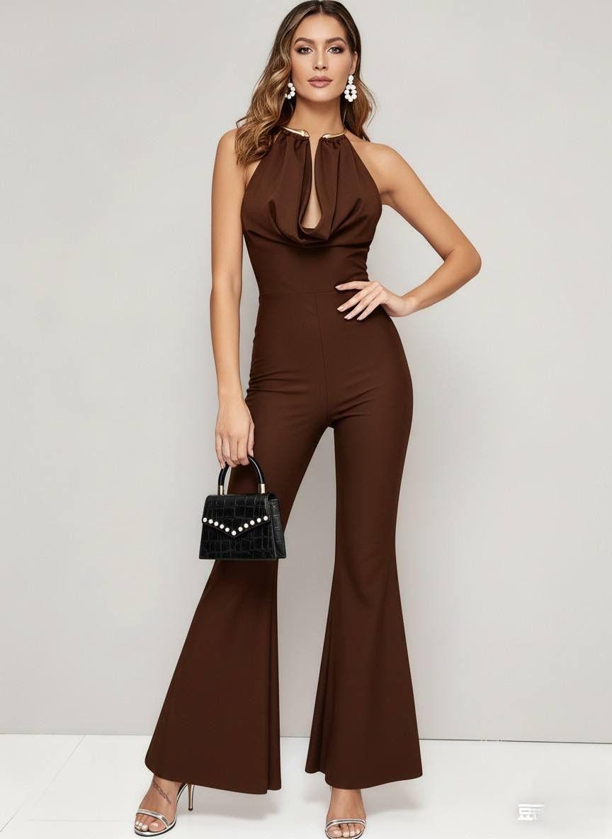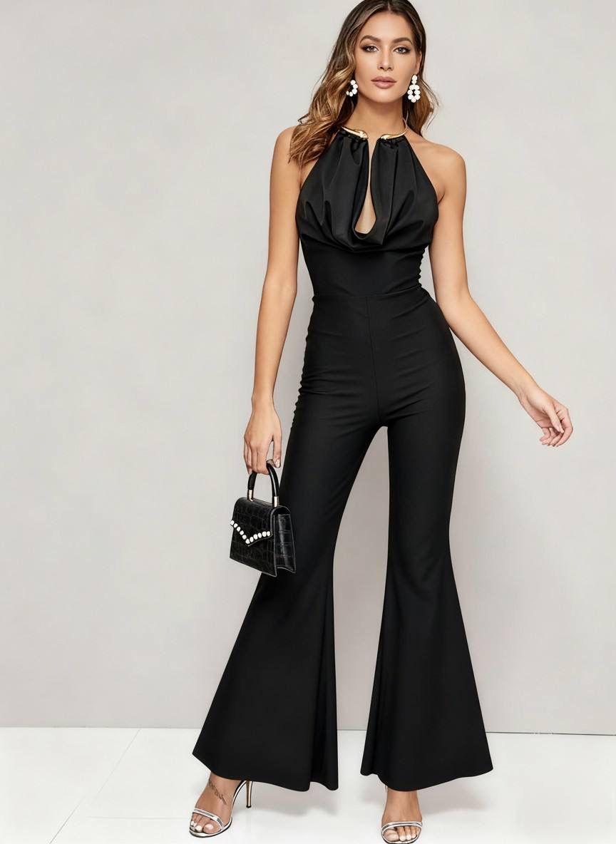 Escote drapeado, detalle dorado y espalda al aire. El mono que convierte cualquier plan en una alfombra roja.