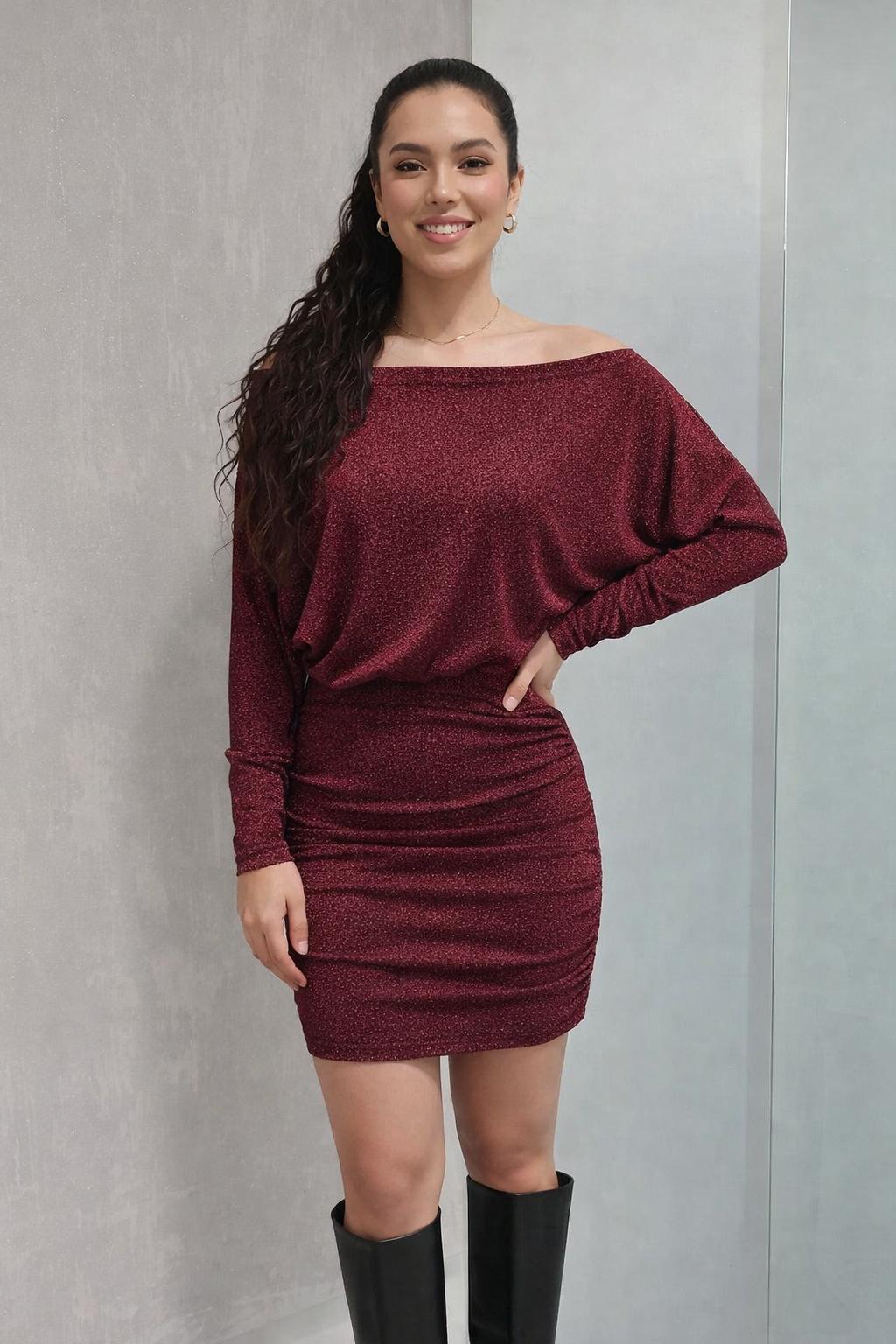 Vestido corto de brillo con corte ajustado y fruncido lateral que marca sin apretar (lo justo para que digan “wow”).
