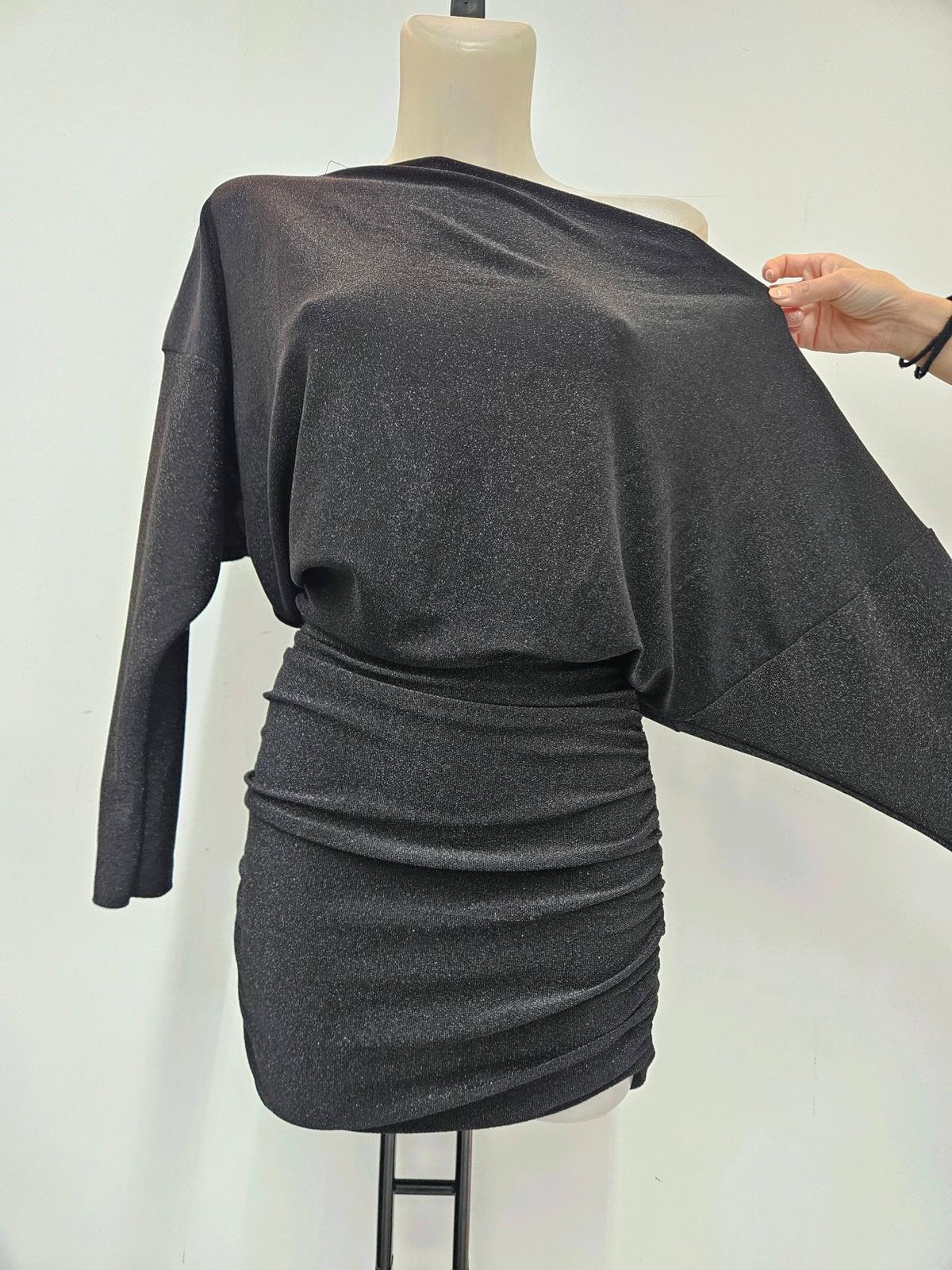 Vestido corto brillante con fruncido lateral y caída fluida en la parte superior. Cómodo, sexy y listo para la noche.