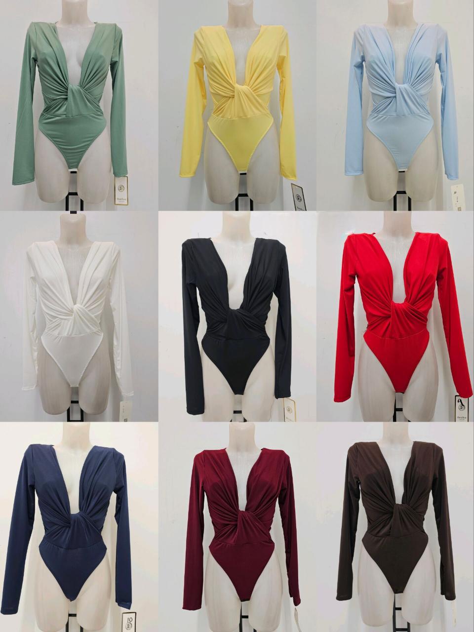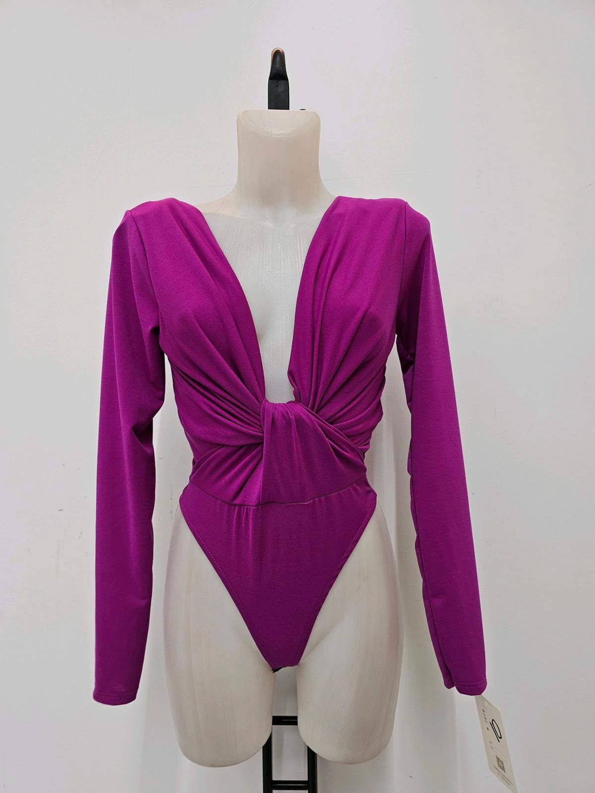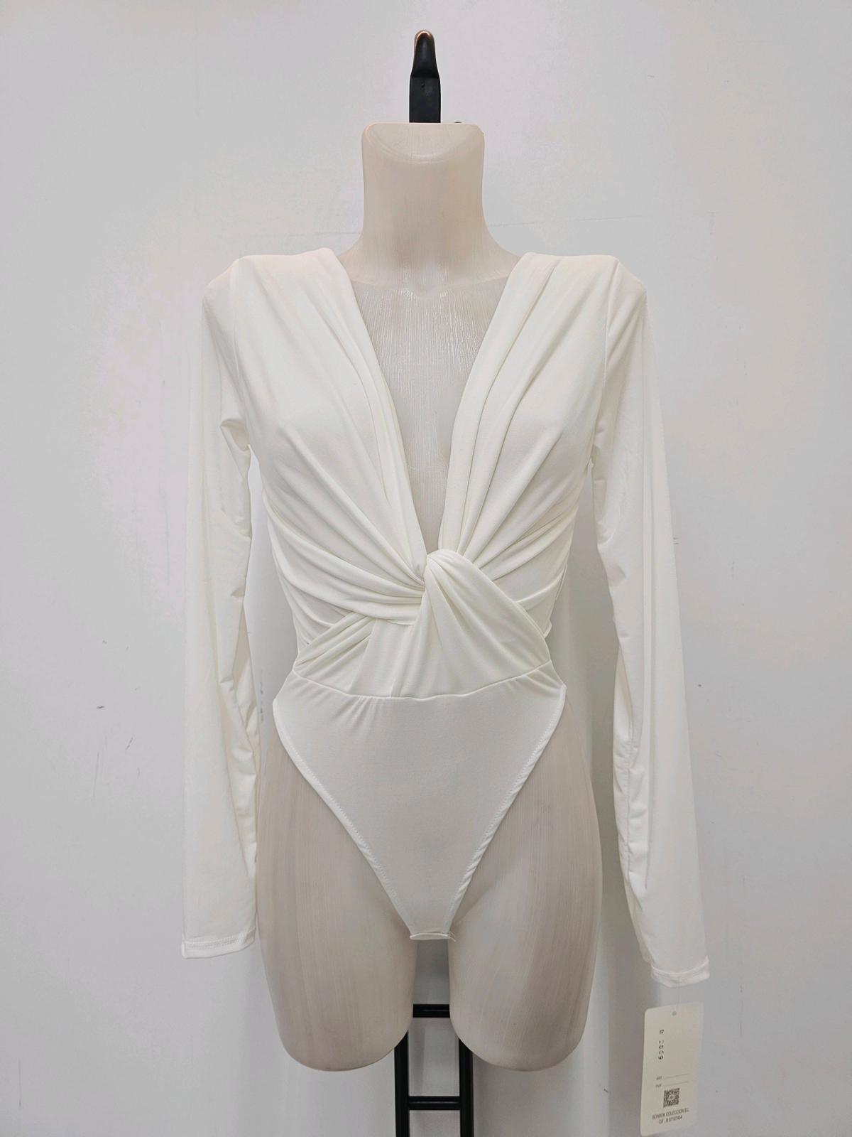 Body drapeado con escote profundo y manga larga. Favorece, estiliza y combina con cualquier look de noche.