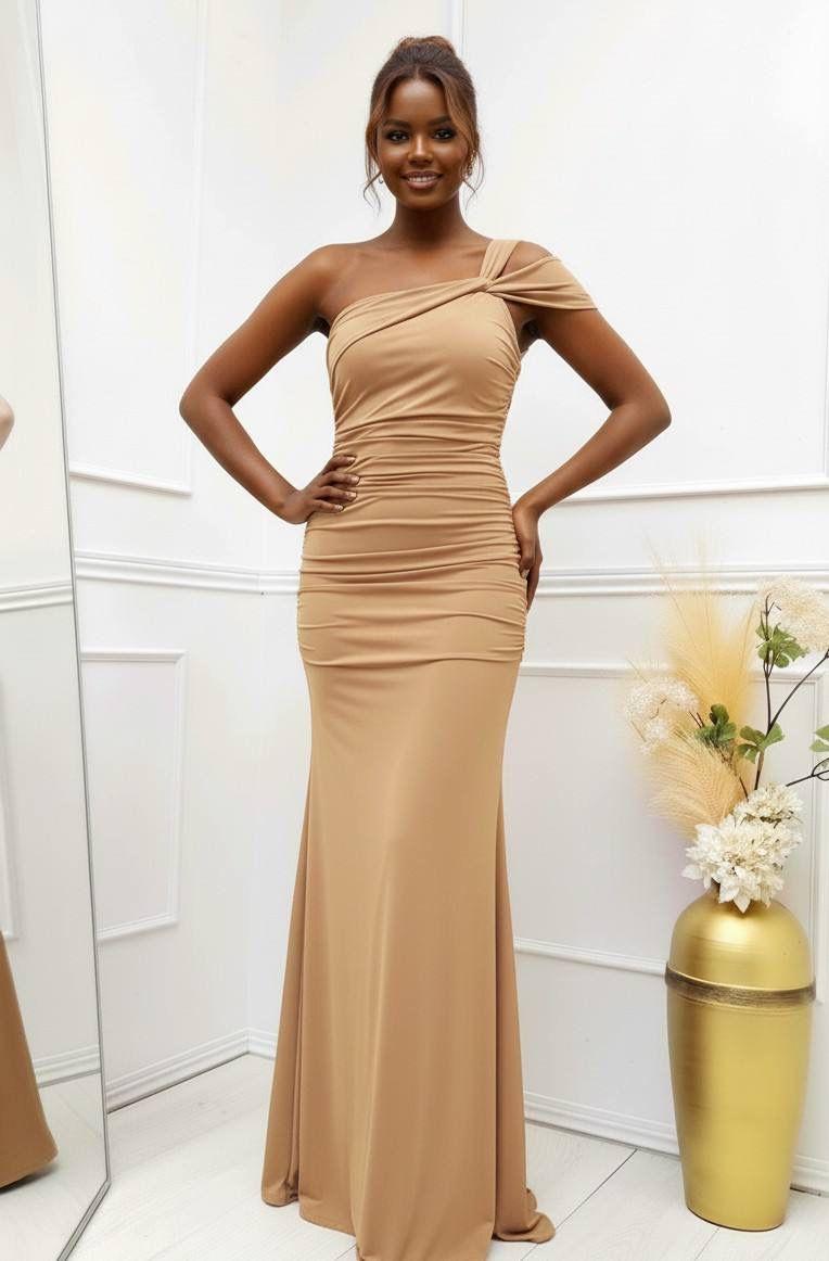 El vestido Hevia es pura elegancia sin esfuerzo. Un diseño largo y fluido que estiliza la silueta gracias a su fruncido estratégico en la zona del cuerpo, creando un efecto favorecedor desde el primer momento. El escote asimétrico con detalle cruzado en el hombro le aporta ese punto especial que lo hace perfecto para eventos, bodas, cenas o noches en las que quieres destacar sin ir recargada.