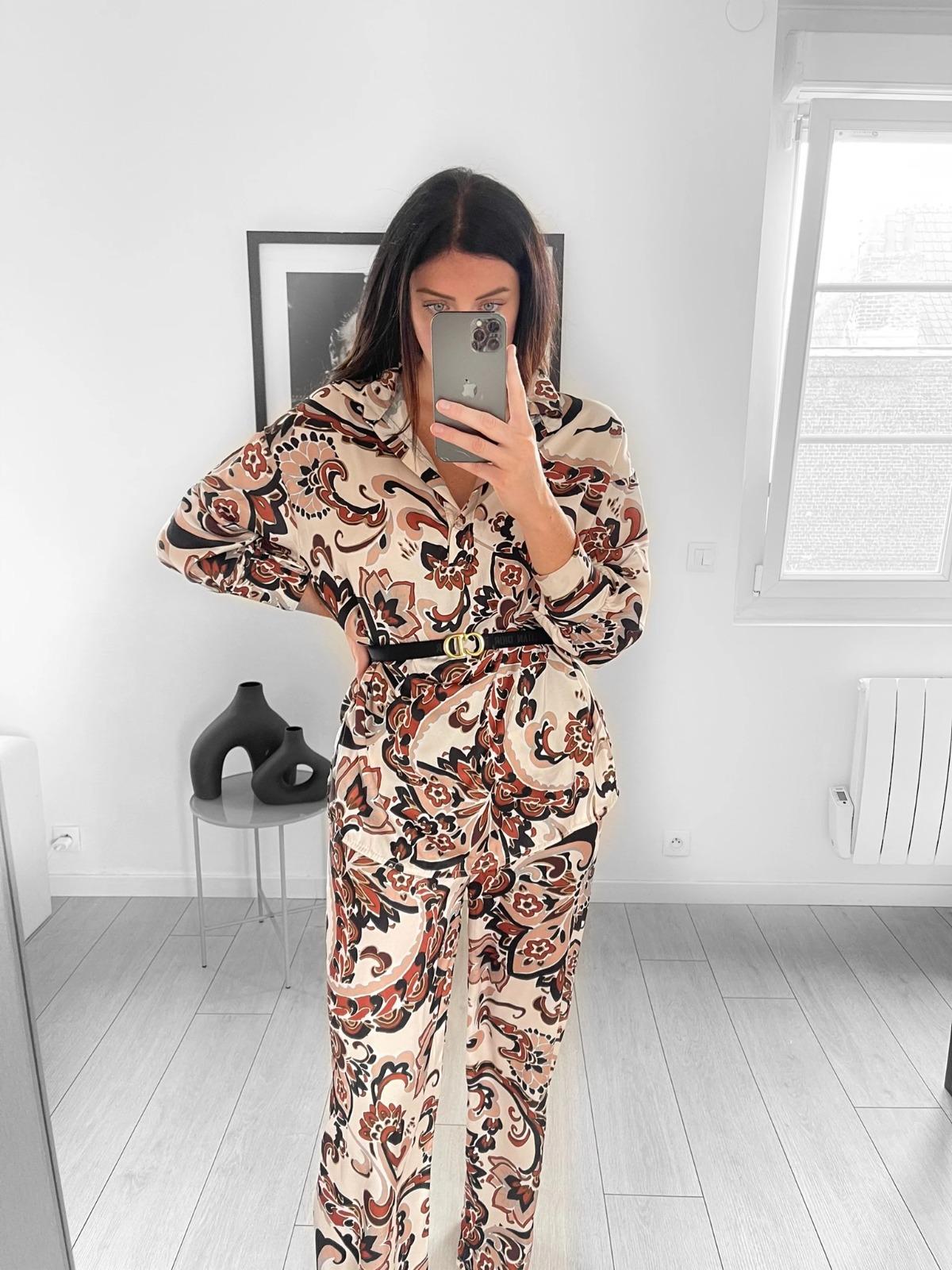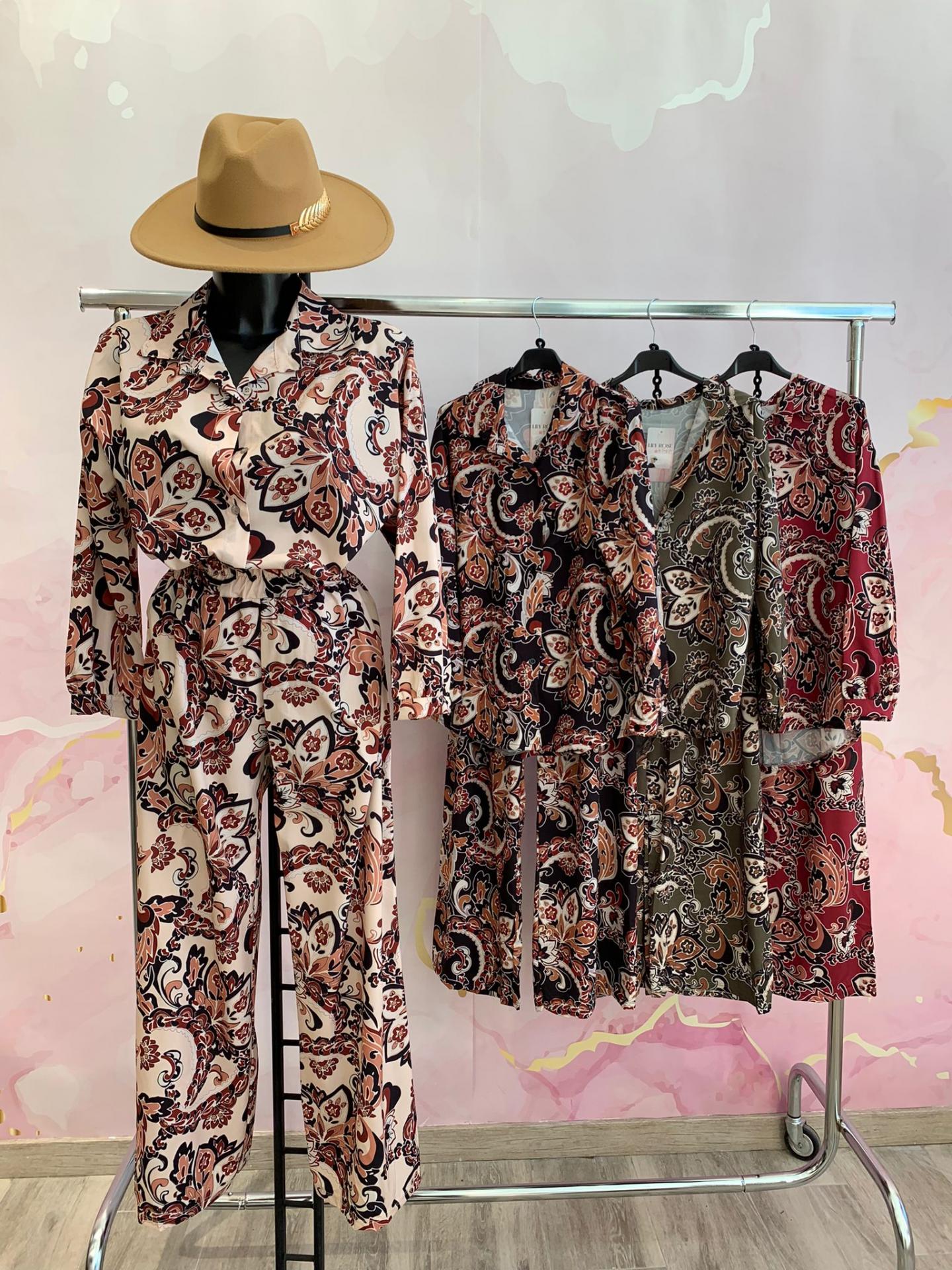 Incluye: Pantalón palazzo de tiro alto con goma en cintura y camisa