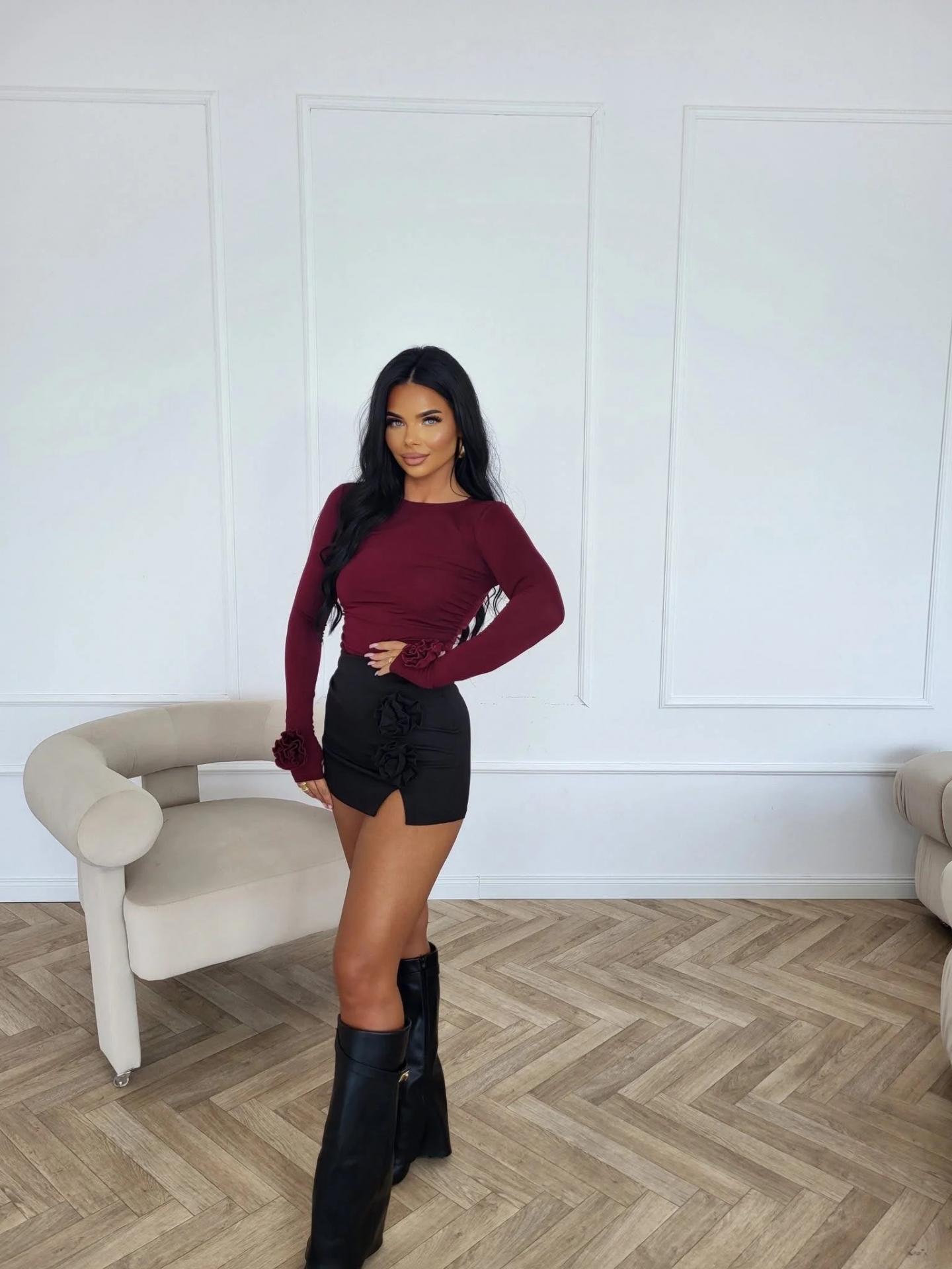Top ajustado de licra elástica con detalles de flores en los puños, un diseño femenino y con mucha personalidad.
