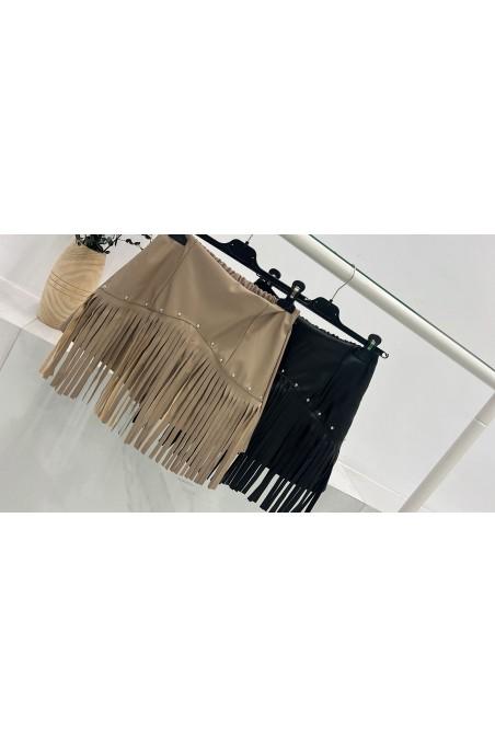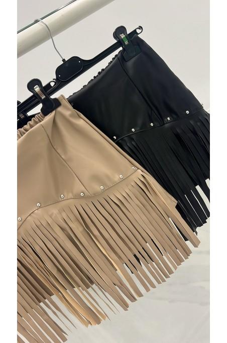 Falda pantalón de polipiel con flecos, para las que quieren bailar sin preocuparse de nada. Cómoda, con un toque rebelde y ese aire western que convierte cualquier look básico en uno de wow.