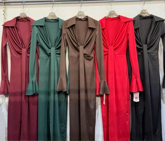 Vestido largo ajustado con escote profundo y abertura frontal. Tejido de licra gruesa que realza la figura y añade un toque sofisticado y atrevido.