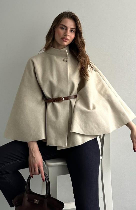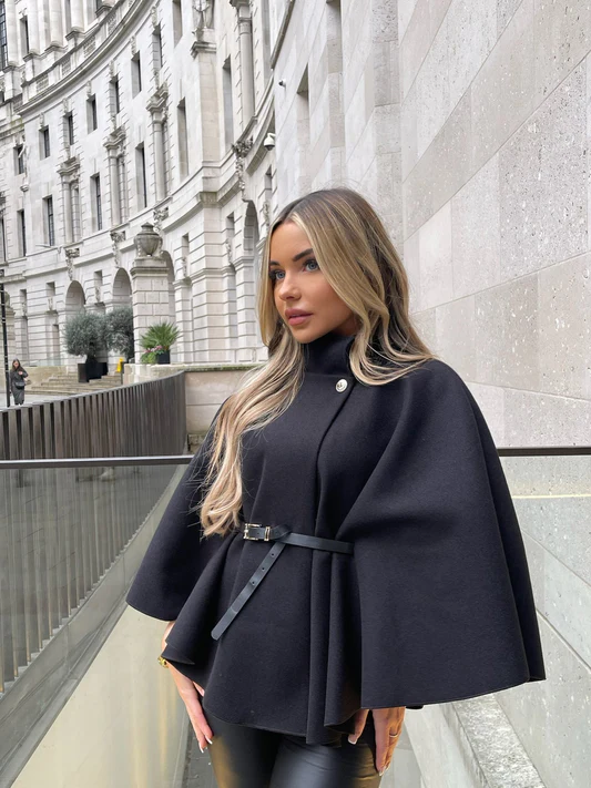 Capa elegante con cinturón, ideal para días fríos con estilo. Su corte amplio y tejido suave aportan un toque chic y sofisticado.
