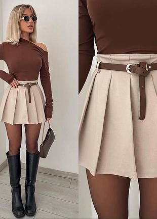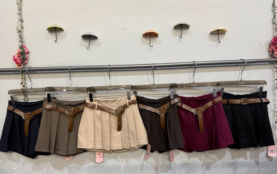 ✨ Falda corta con cinturón incluido, estilo mini power look. Con vuelo, tablitas y colores ideales para combinar en otoño o primavera.