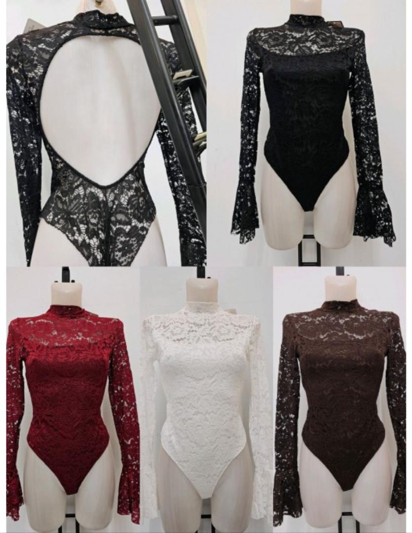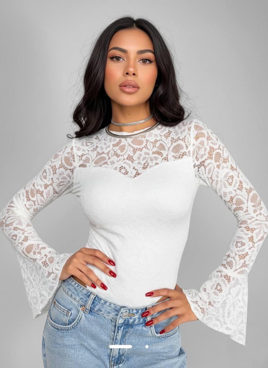 Body de encaje con mangas acampanadas y espalda abierta. Ajustado, elegante y con un toque sensual perfecto para tus noches más atrevidas.