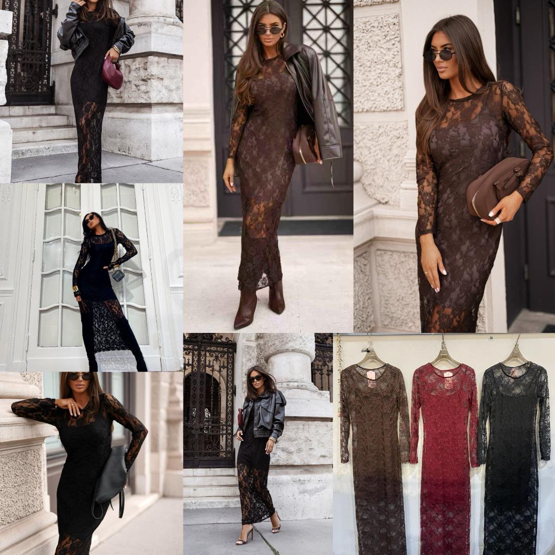 Este vestido es la definición de “misterio elegante”. Viene en dos piezas: un forro ajustado que abraza el cuerpo con suavidad y una capa de encaje largo que lo cubre todo… pero sin esconder nada.