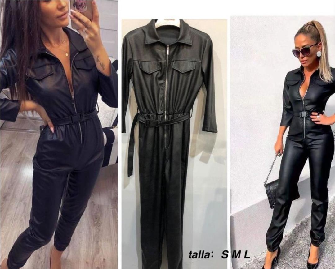 Mono efecto cuero con cremallera y cinturón. Ajustado, moderno y con un toque rebelde irresistible.