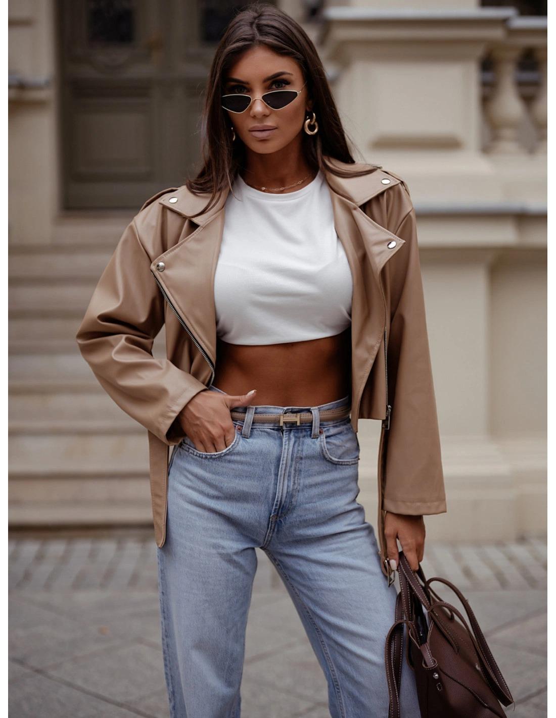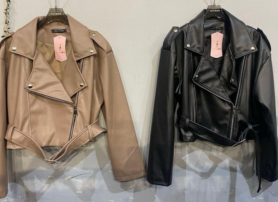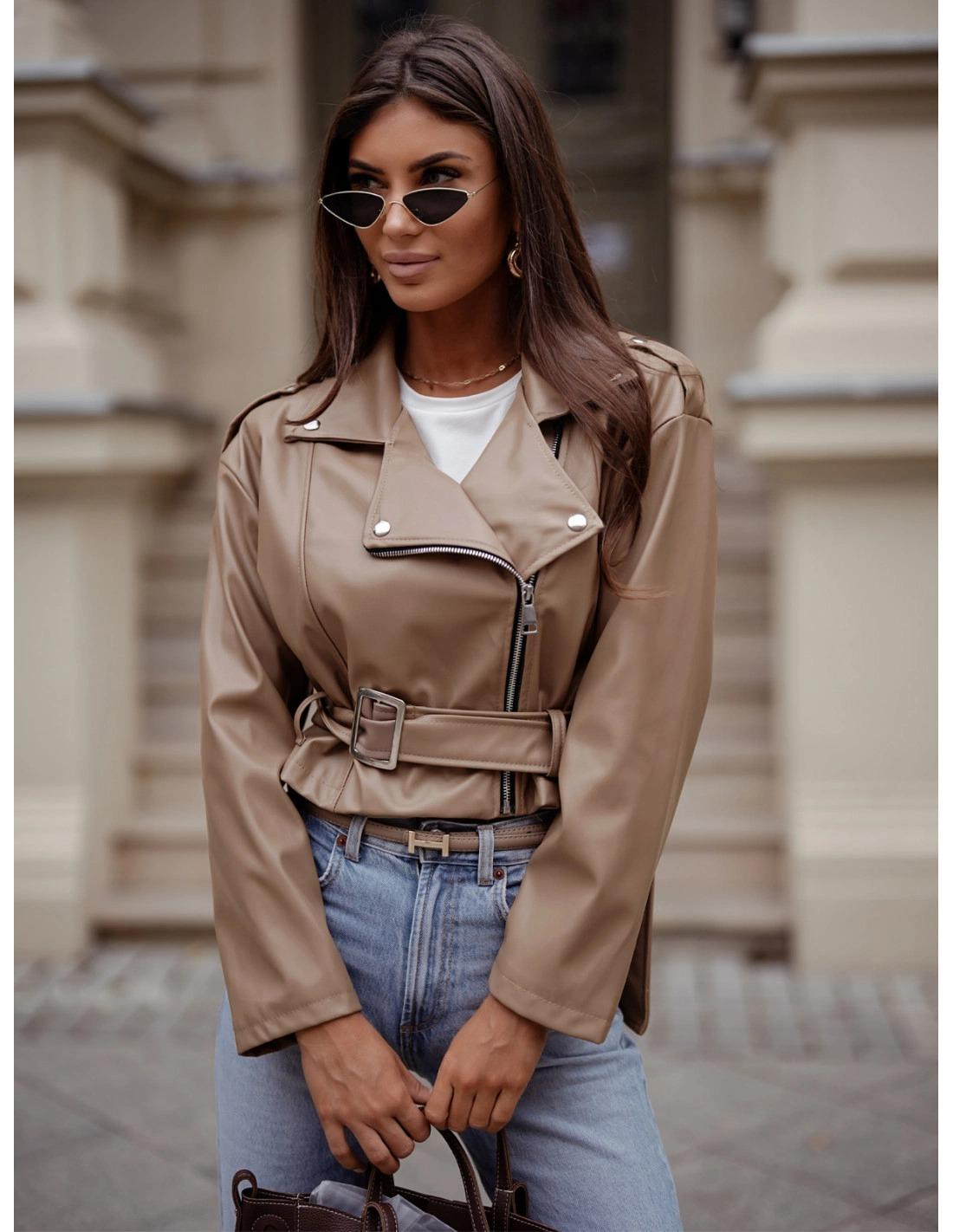 Chaqueta biker de polipiel con cinturón. Elegante, cañera y con actitud.