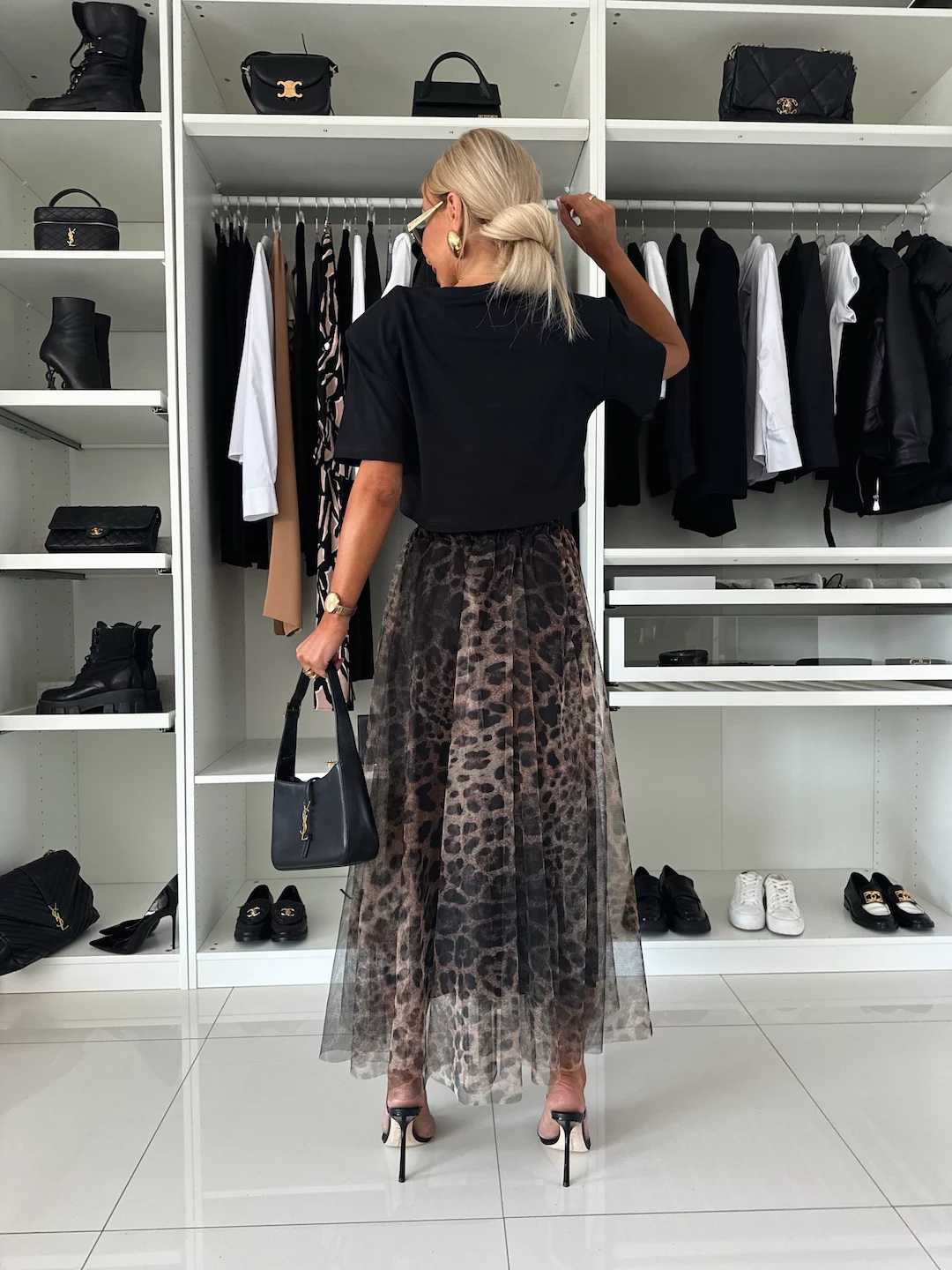 Falda de tul con estampado animal print. Salvaje, cómoda y con más actitud que muchos trajes.