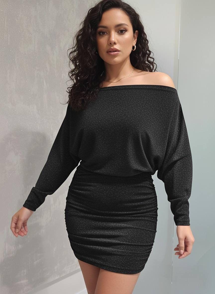 Vestido corto brillante con fruncido lateral y caída fluida en la parte superior. Cómodo, sexy y listo para la noche.