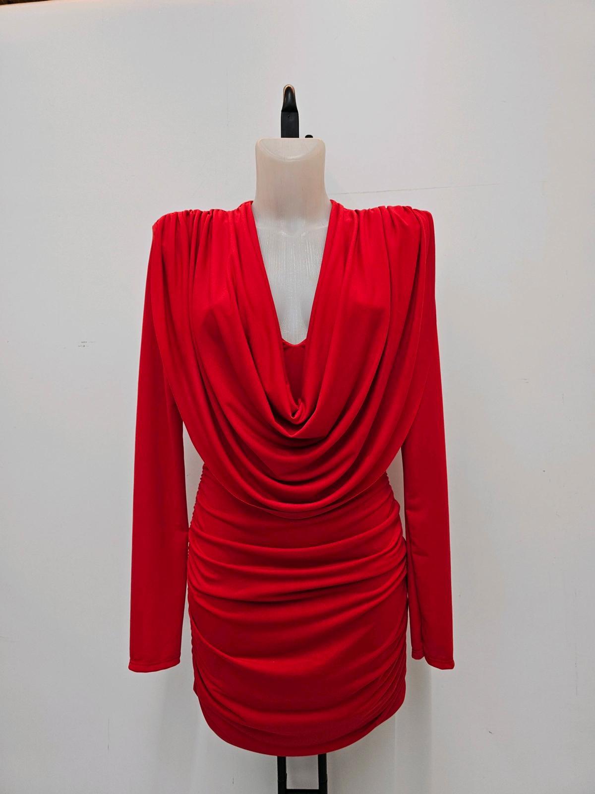 Vestido drapeado efecto cascada que convierte cualquier plan en un planazo. Su escote profundo con caída suave crea un efecto estilizado y elegante sin esfuerzo, mientras que el tejido con frunce lateral recoge, moldea y marca la figura en los puntos justos.