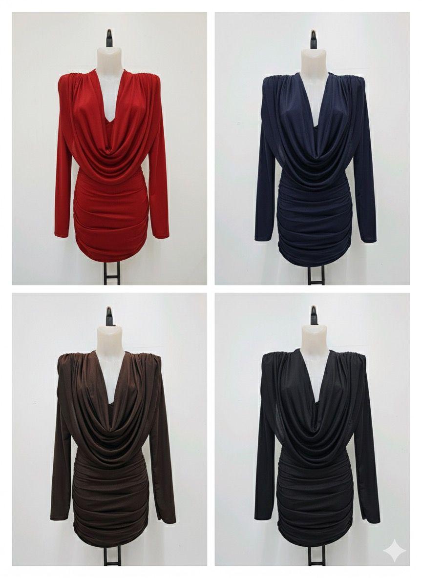 Vestido drapeado con escote efecto cascada y frunce lateral. Favorecedor, elástico y perfecto para noches especiales.