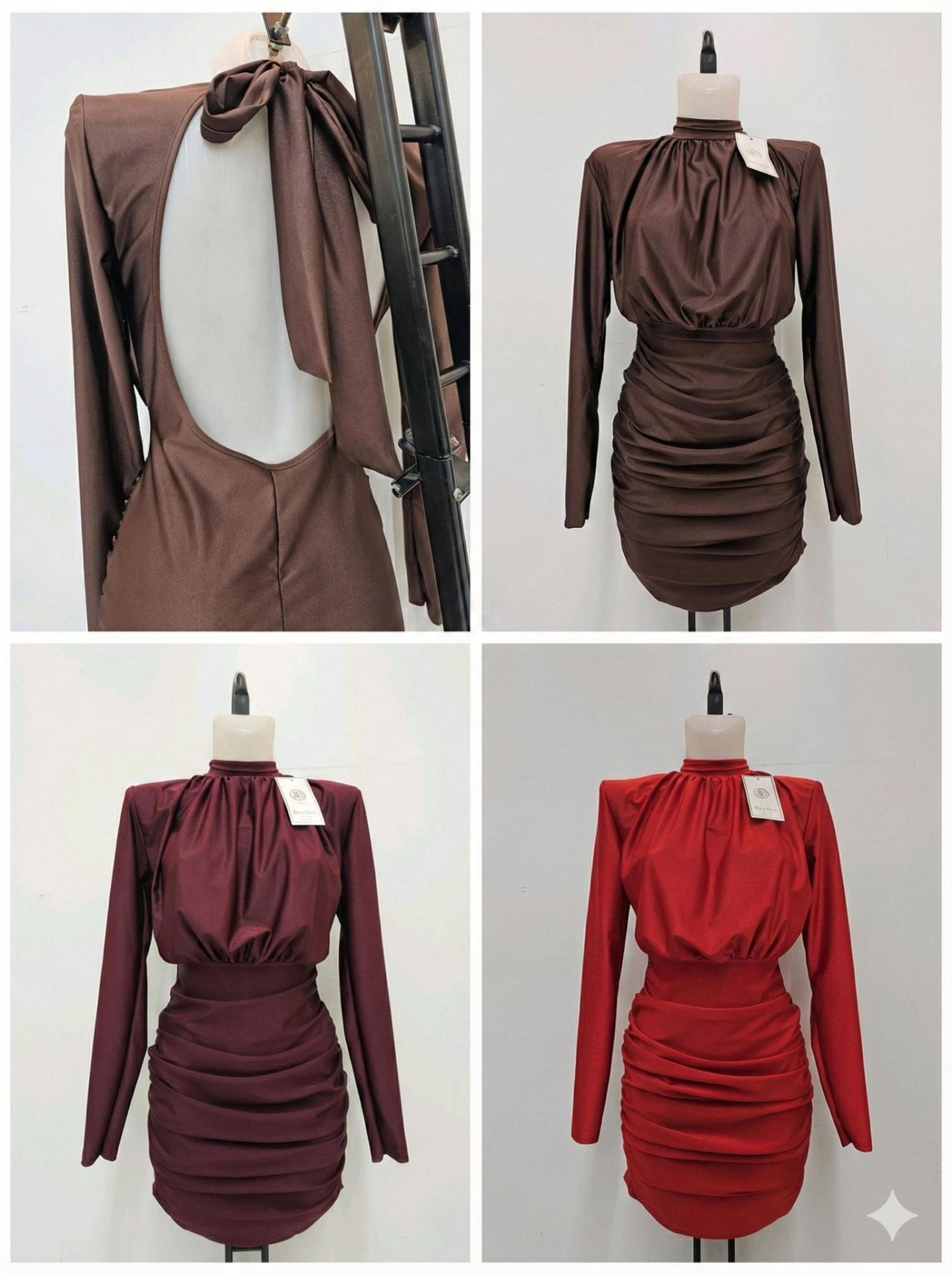 El Vestido Astrid es de esos que te hacen sentir increíble desde el primer segundo. Su diseño combina un cuello alto elegante, unas mangas largas estilizadas y un cuerpo con fruncido lateral estratégico que moldea la figura sin esfuerzo.