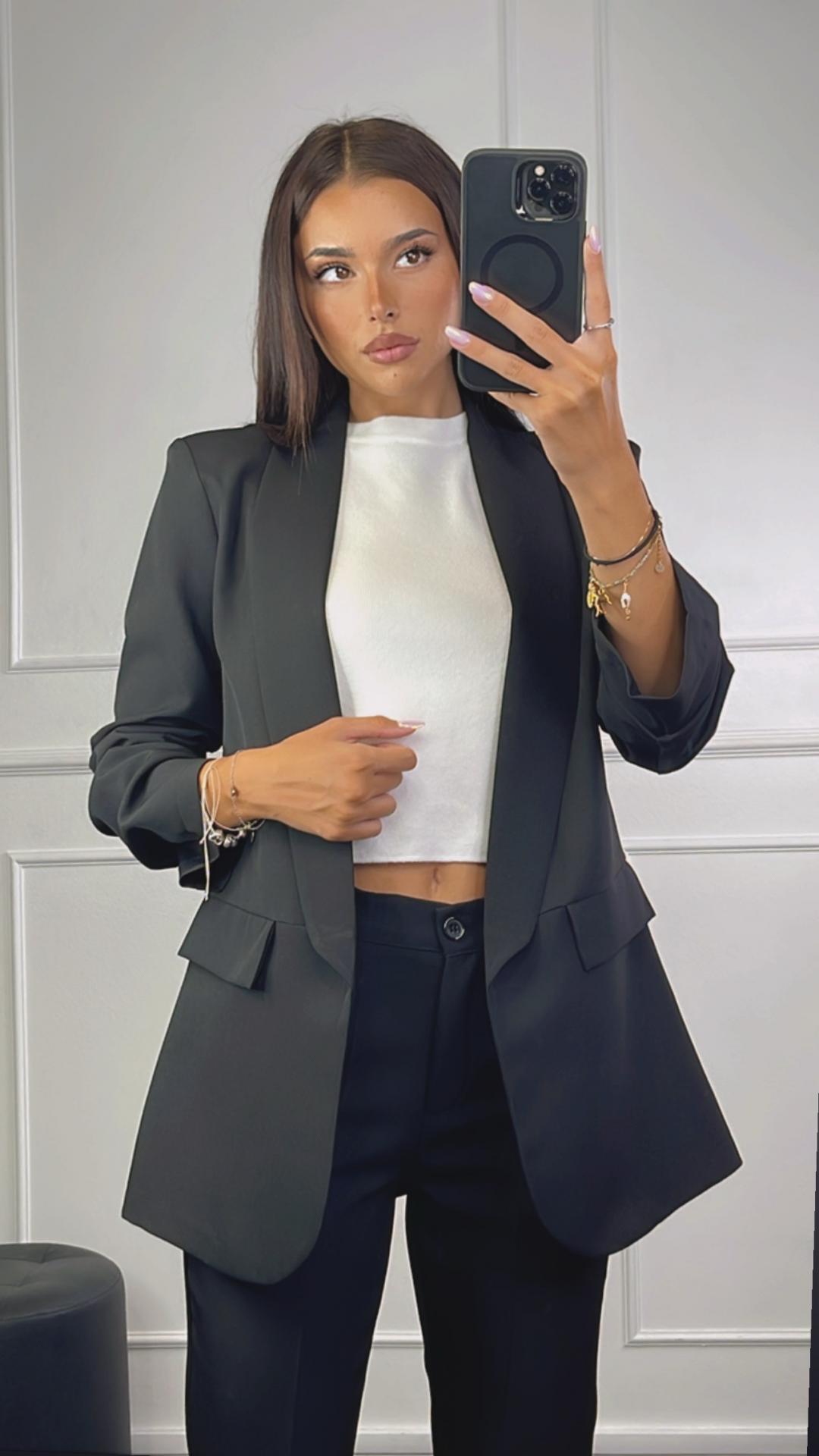 La blazer que combina con absolutamente todo. Su tejido fluido y ligero le da un movimiento precioso, mientras que el corte recto estiliza y aporta ese toque elegante que eleva cualquier look sin esfuerzo.