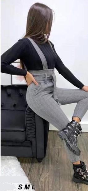Pantalón con tirantes ajustables y lazada en la cintura. De esos que te hacen parecer seria… hasta que abres la boca.