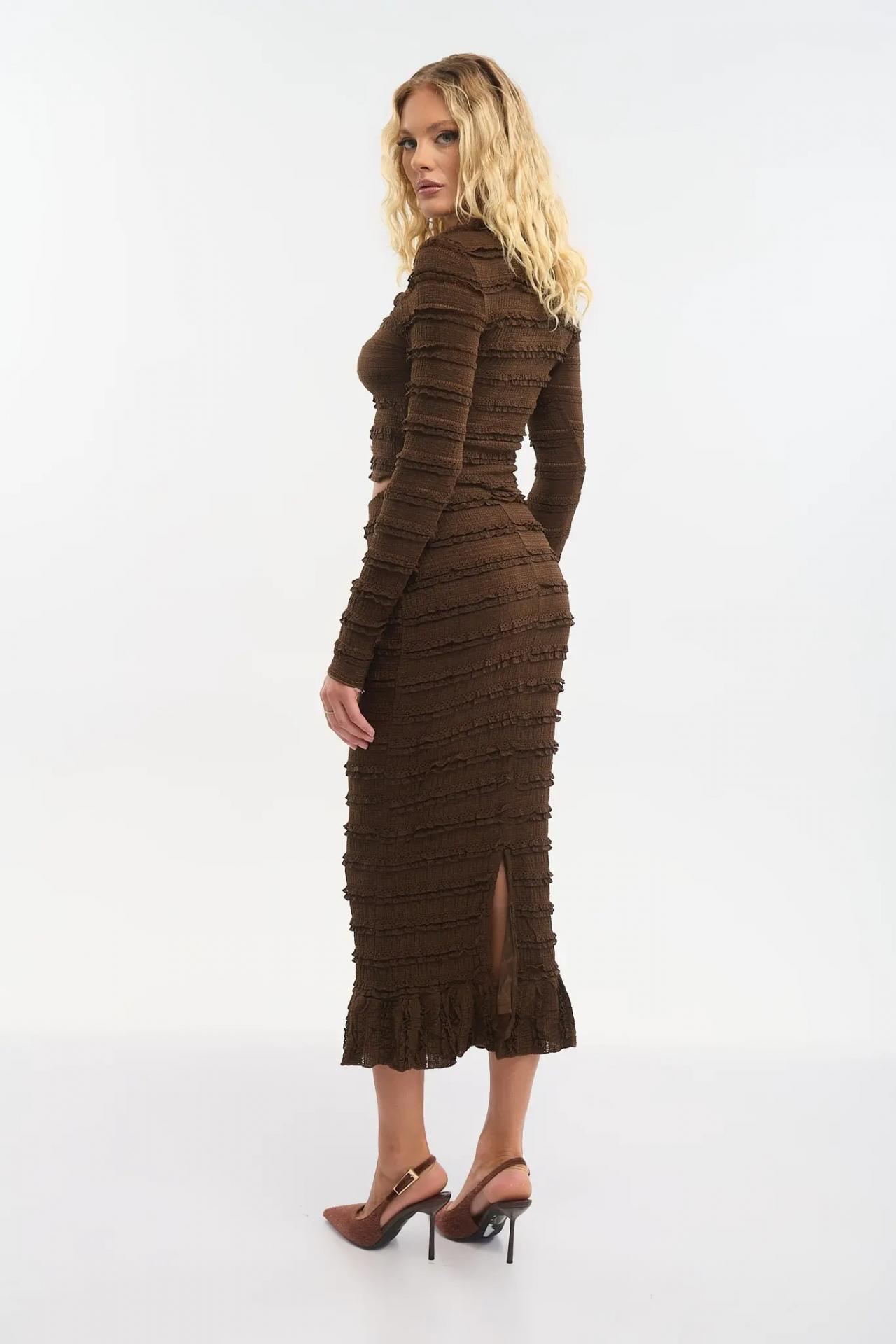 Conjunto de dos piezas texturizado: top liso y falda midi. Elegante, cómodo y con una actitud peligrosa en modo silencio.