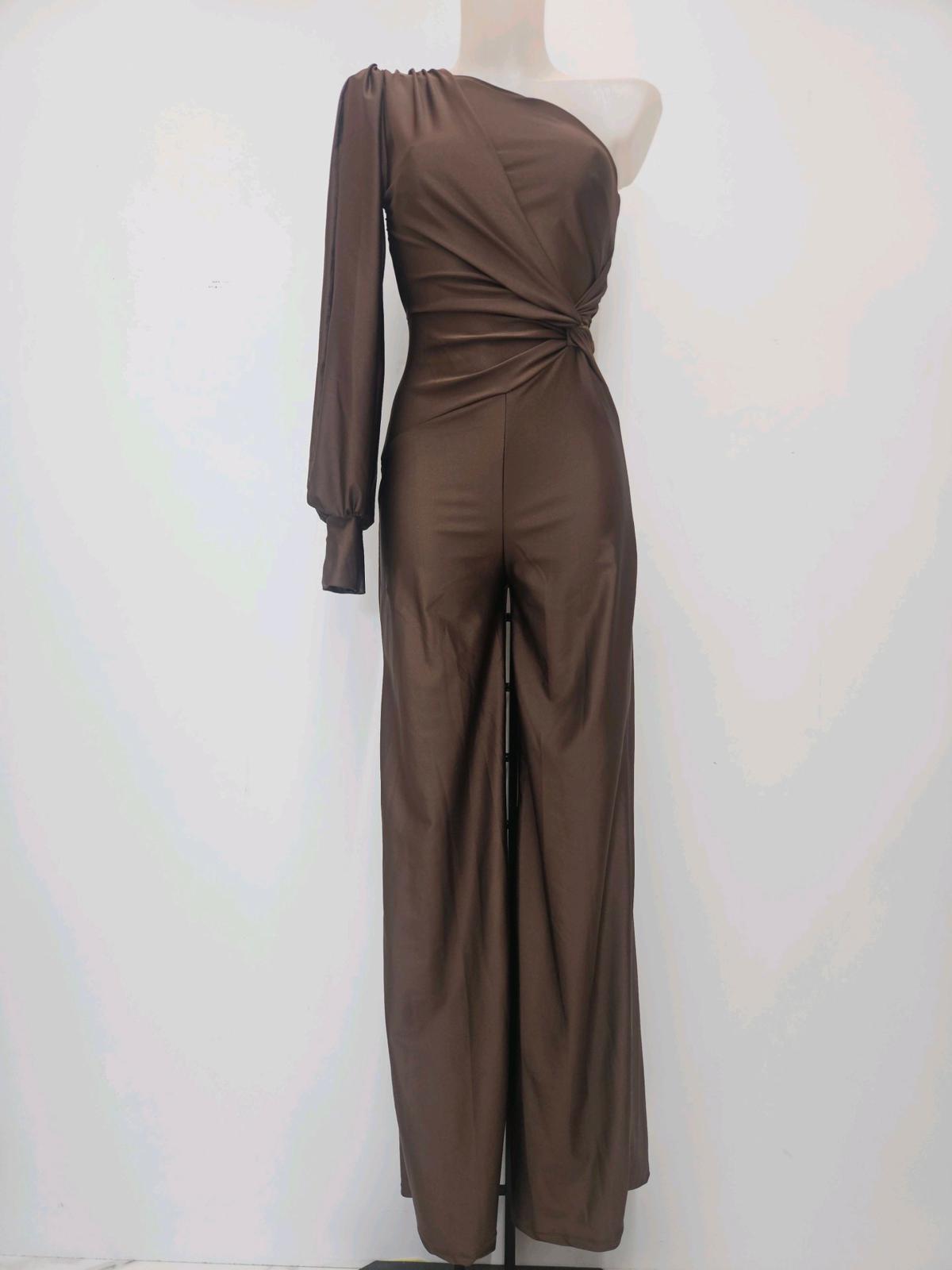 El tejido satinado cae con un brillo discreto pero muy sofisticado, perfecto para bodas de tarde, cenas especiales o cualquier evento donde quieras ir cómoda sin renunciar al “wow”. La pernera ancha estiliza muchísimo y alarga visualmente la figura, y el diseño asimétrico aporta ese toque moderno que diferencia a quien lleva un mono estándar… de quien lleva este.