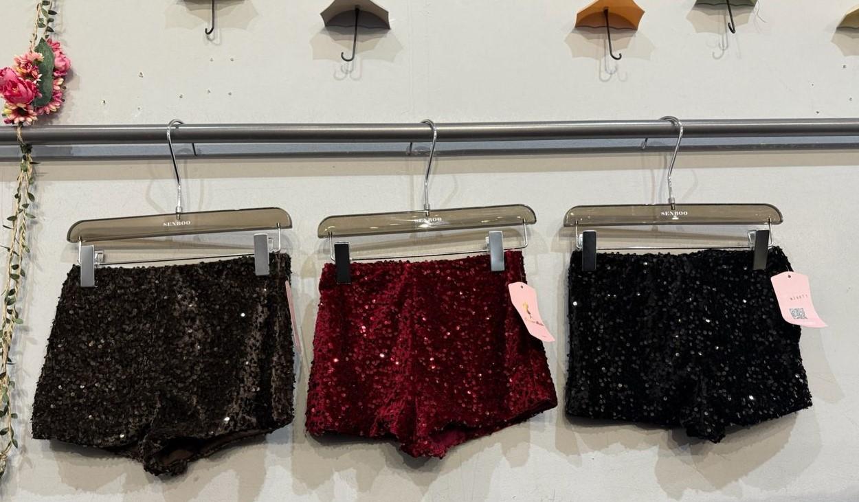 Shorts de terciopelo con lentejuelas, cómodos, brillantes y perfectos para looks de noche.