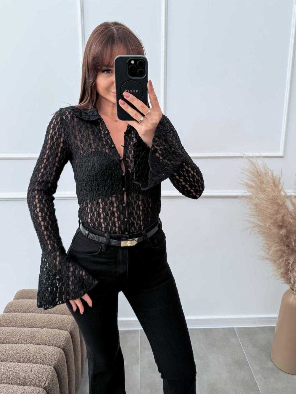 Blusa de encaje con botones frontales y manga acampanada. Elegante, femenina y muy versátil.