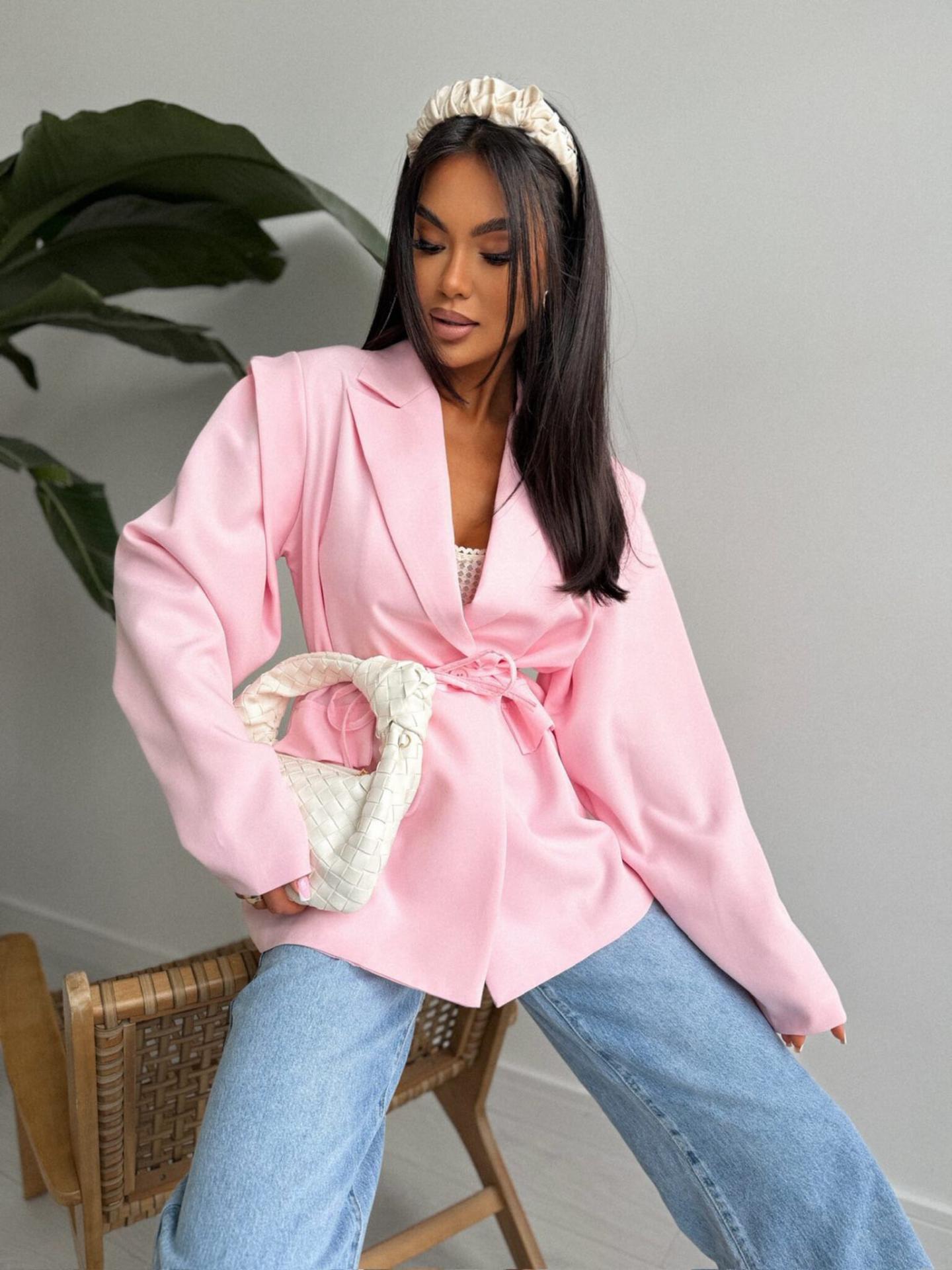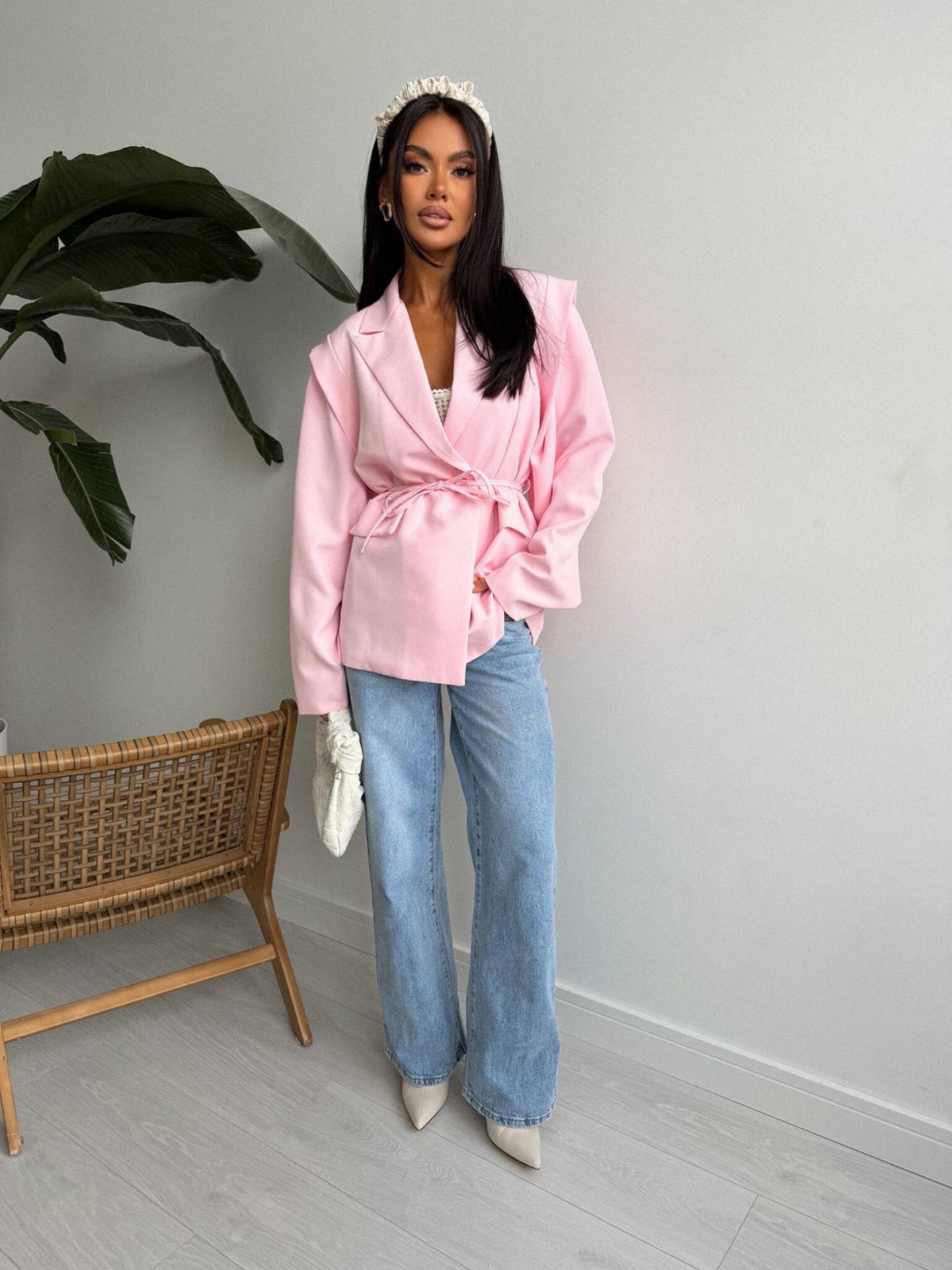 Blazer entallada con cinturón y lazada ajustable. Elegante, versátil y perfecta para looks de día o de noche.